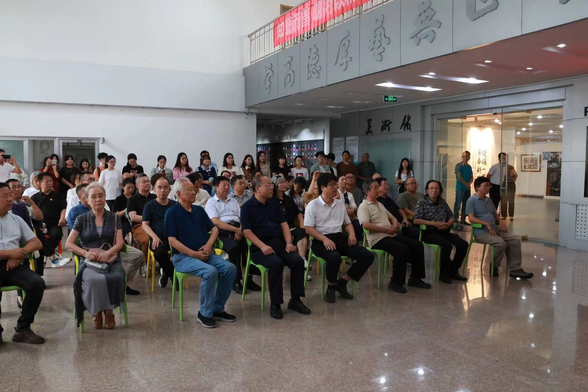 美术馆,参观建院60周年艺术作品展,并交流学习。参观过程中,领导及嘉宾认真欣赏每一幅精湛的作品,深刻品味作品背后的意义,感悟艺术家们的笃定之心和奋发之志。
