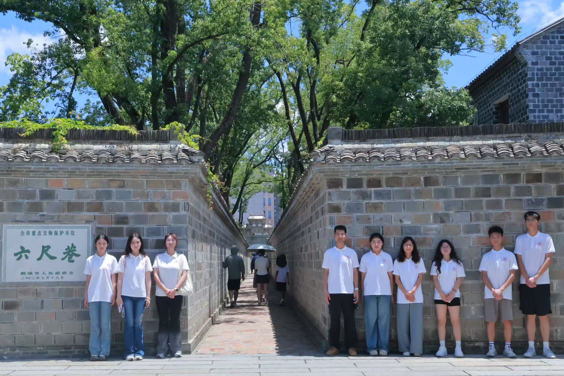 安徽桐城六尺巷,青砖古墙,文脉悠悠,实践团在此开展了一场融合历史智慧与时代精神的文化探寻之旅。2024 年 10 月,习近平总书记亲临六尺巷,强调其体现了先人化解矛盾的历史智慧,要作为弘扬中华优秀传统文化的教育场所,充分发挥中华民族讲求礼让、以和为贵传统美德的作用,营造和谐社会环境。团队成员亲临六尺巷,深切体悟“一纸书来只为墙,让他三尺又何妨”所承载的中华民族谦和礼让的处世哲学。在礼让文化主题展馆中,同学们通过详实的史料与生动的展示,系统学习了礼让精神在历史长河中的传承脉络及其对构建和谐社会的深远意义。此次实地探访与专题调研,不仅加深了青年学子对“礼让”这一文化基因的理解,更激励他们思考如何将“以和为贵”的传统美德内化于心、外化于行,为营造安居乐业的和谐社会环境贡献青春力量。