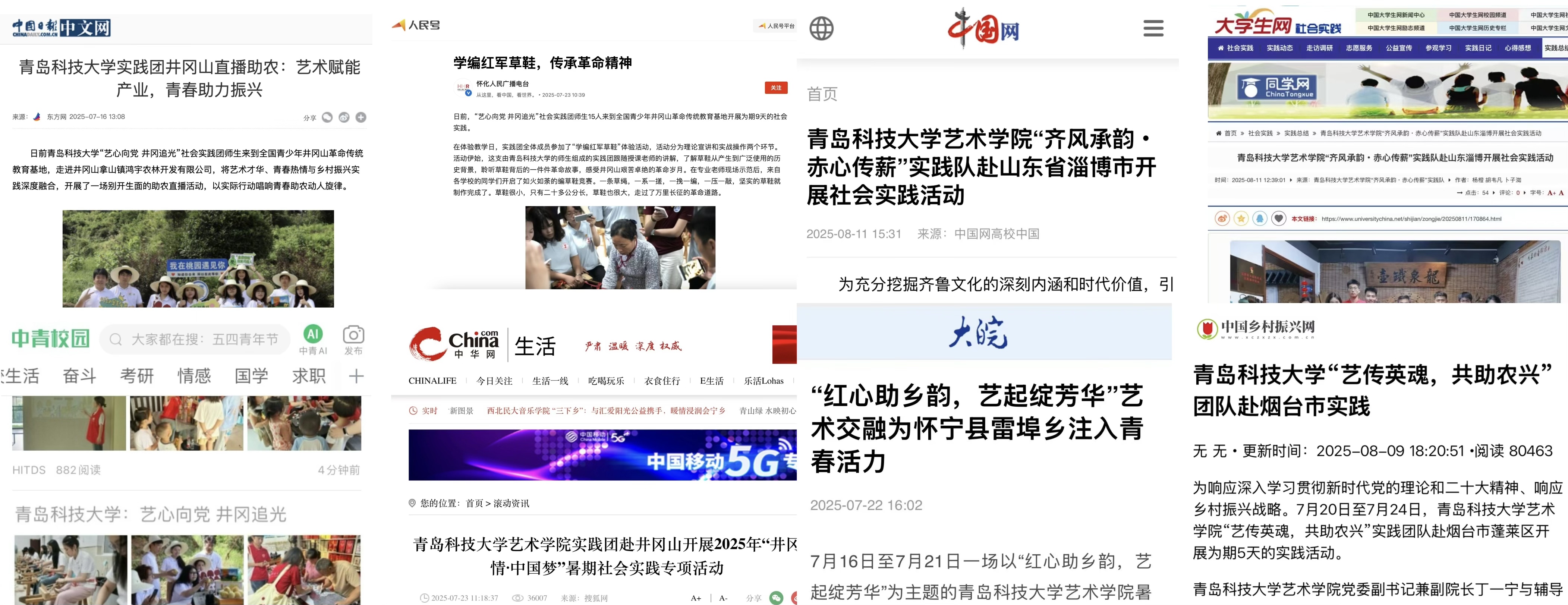 依托多渠道、多维度传播矩阵,在国家级、省级、校级网站与新媒体平台持续获得报道与关注。各实践团事迹得到中国日报、人民日报、中青校园、中华网、大众日报等多家权威媒体的报道,在Netflav