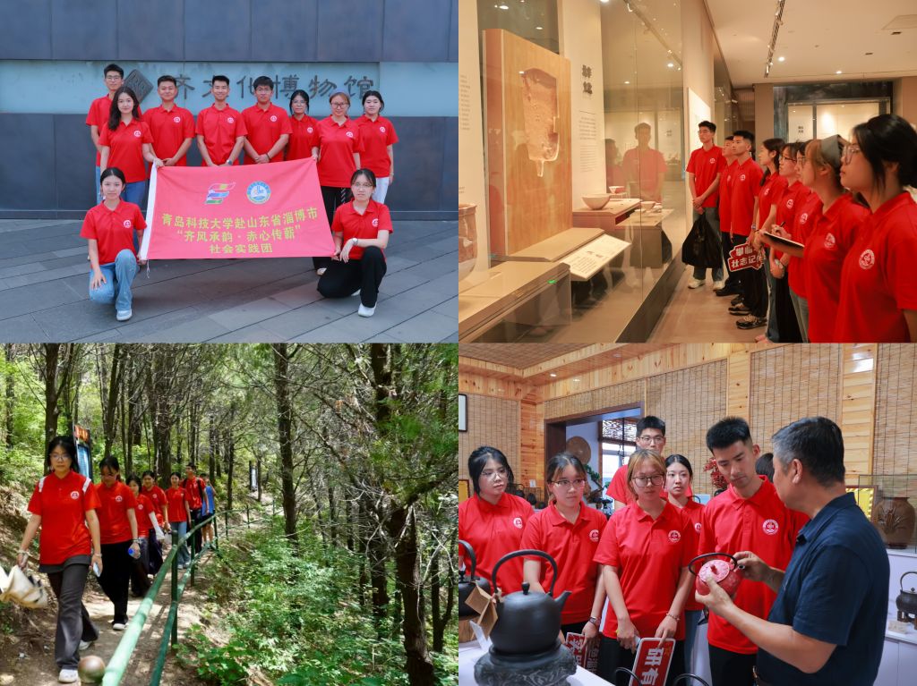 重点培育的实践骨干队伍,2025年8月,团队赴山东淄博开展文化探寻。成员参观学习齐文化博物馆、焦裕禄纪念馆,重走马鞍山红色基地,探访琉璃、陶瓷等非遗项目并与传承人深入交流,依托专业优势,将齐文化纹样、红色精神元素融入非遗载体,创作出兼具内涵与创意的文创产品,让传统文化与红色精神焕发新生。