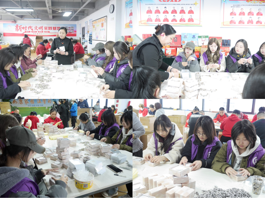 活动现场,“艺术姐姐”团队与残障人士结成互助小组,完成手链分类、质检与包装工作。志愿者们认真聆听辅助性就业项目的讲解,了解残障群体就业现状,深刻意识到用心用情帮扶就业困难群体的重要性。青岛春雨残疾人辅助性就业中心负责人表示,此次活动既为残障人士提供了技能实践支持,也通过艺术互动增强了他们的自信心。