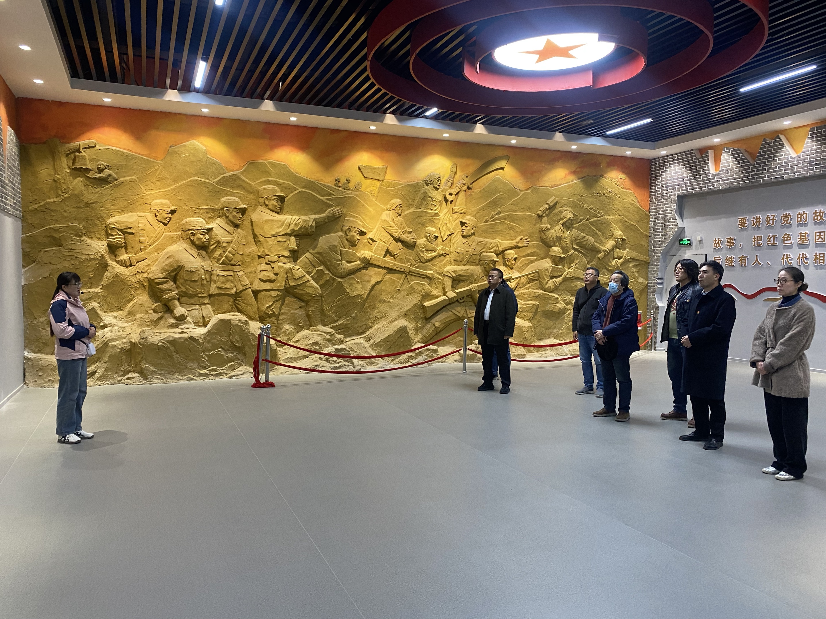 在纪念馆讲解员地讲解下,通过珍贵的历史照片、详实的文献资料、复原的战斗场景及锈迹斑斑的革命文物,全体成员沉浸式感受了大泽山抗日根据地军民同仇敌忾、奋勇抗敌的壮阔历程,深刻体悟了革命先辈为民族独立和人民解放挺身而出的家国情怀与牺牲精神。学习过程中,大家纷纷表示,此次实地学习是一次深刻的党性淬炼和精神洗礼,要从革命历史中汲取奋进力量,将红色精神融入艺术教育教学与人才培养全过程,以艺术为载体讲好红色故事,推动党建工作与业务工作深度融合。