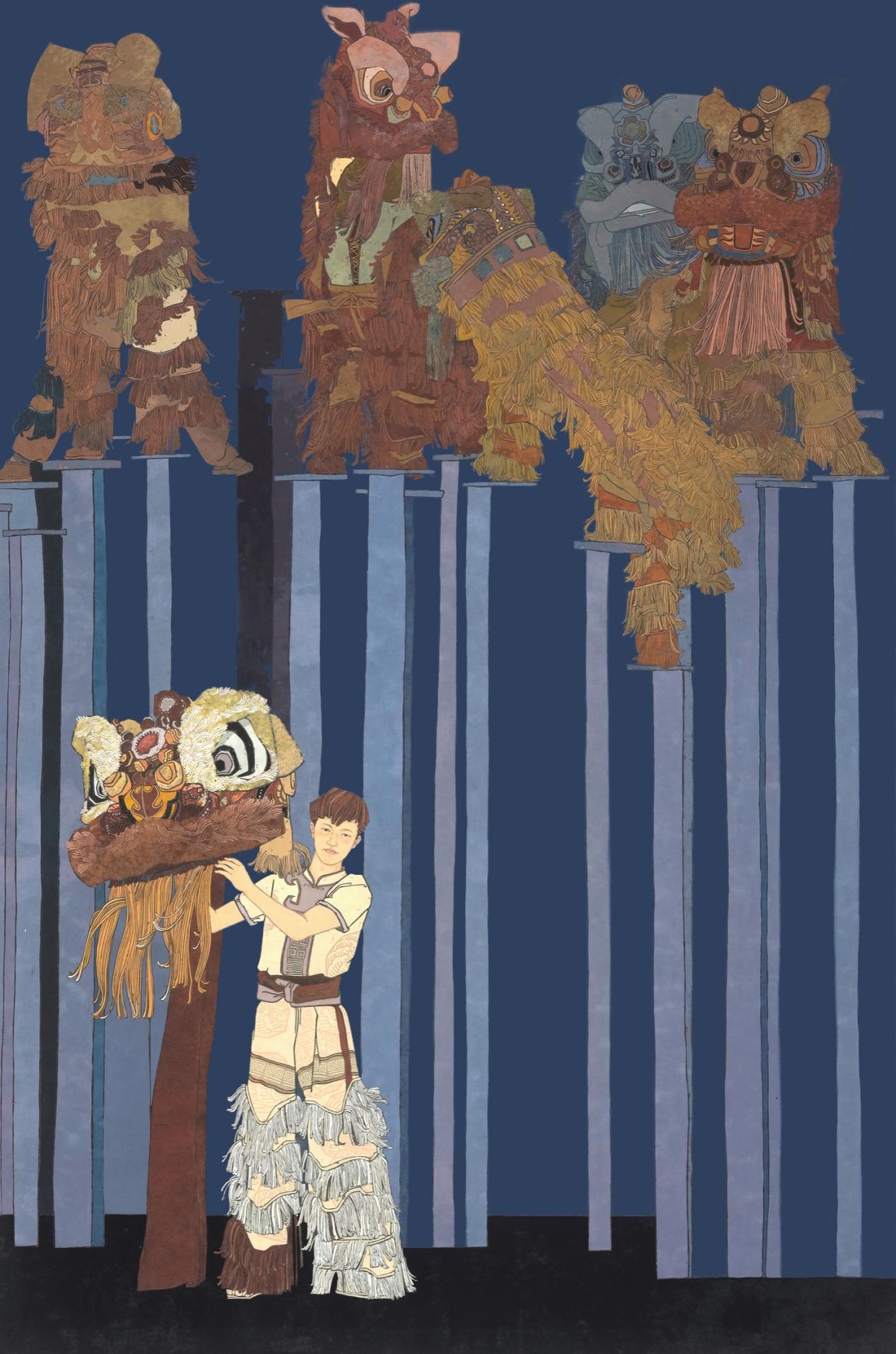 张鹤露《中华醒狮》工笔重彩画
