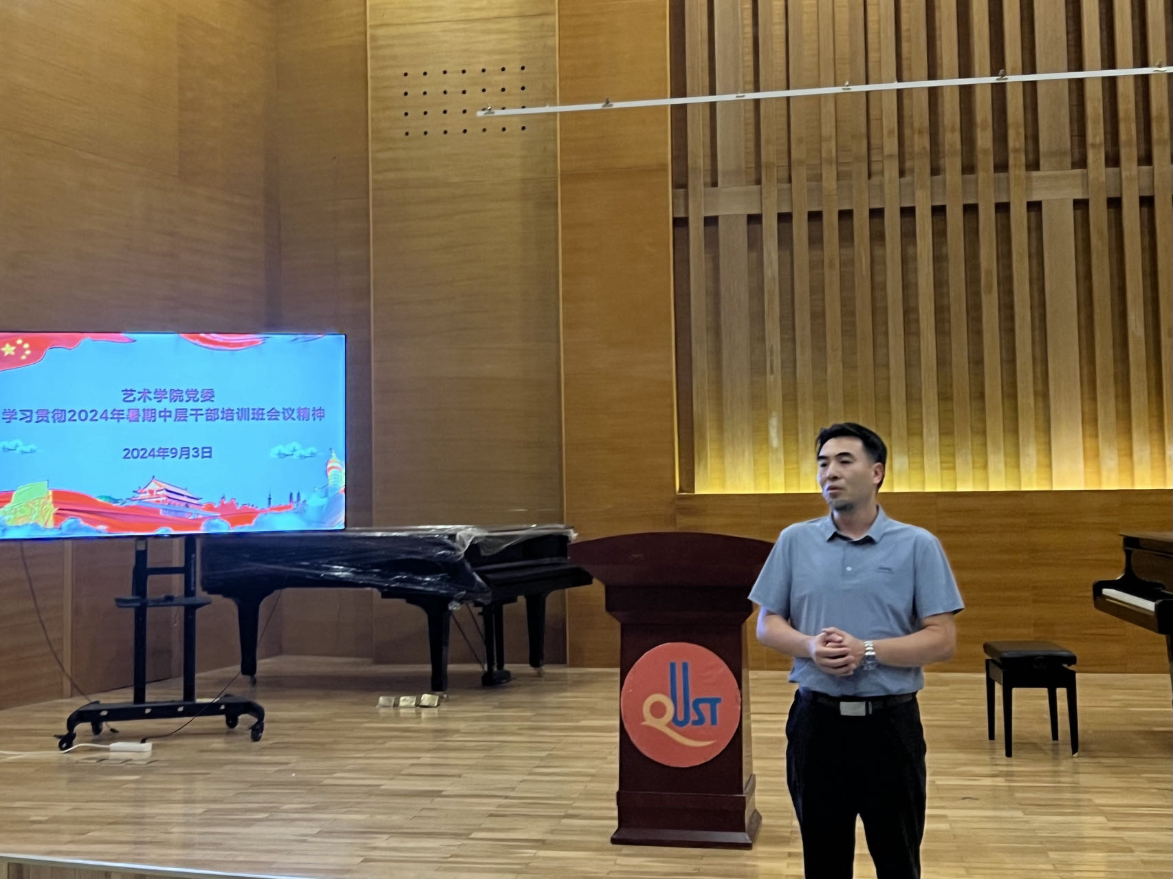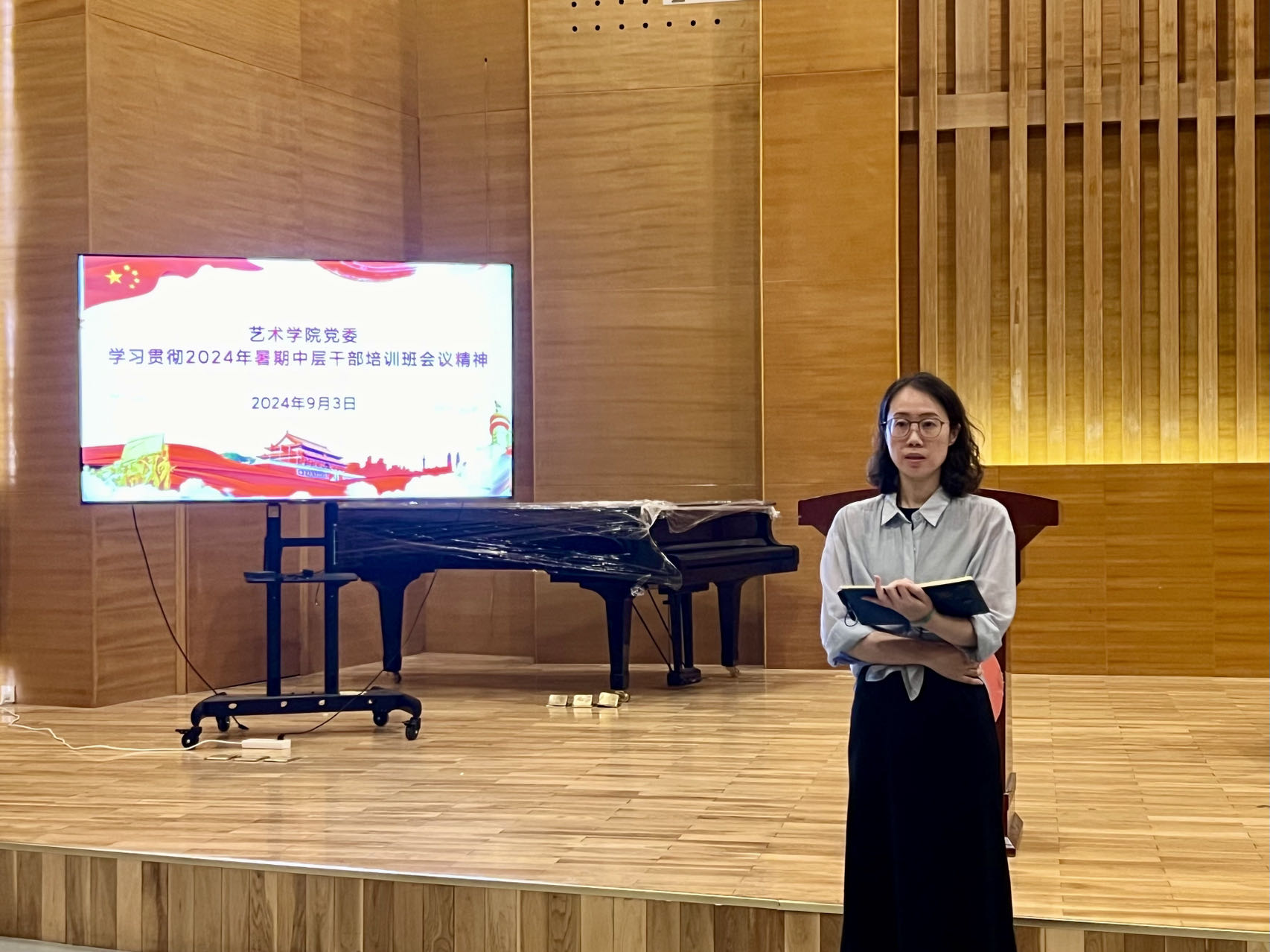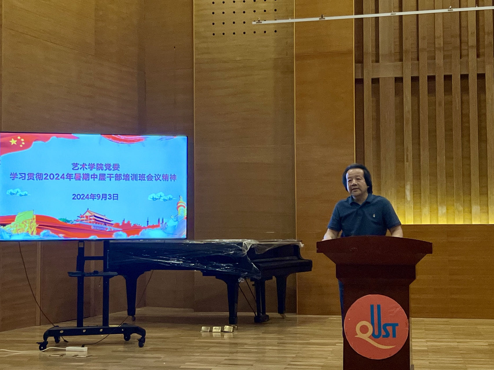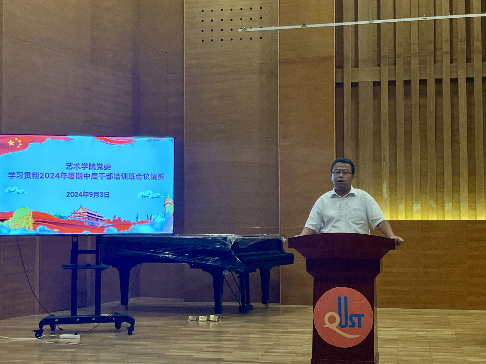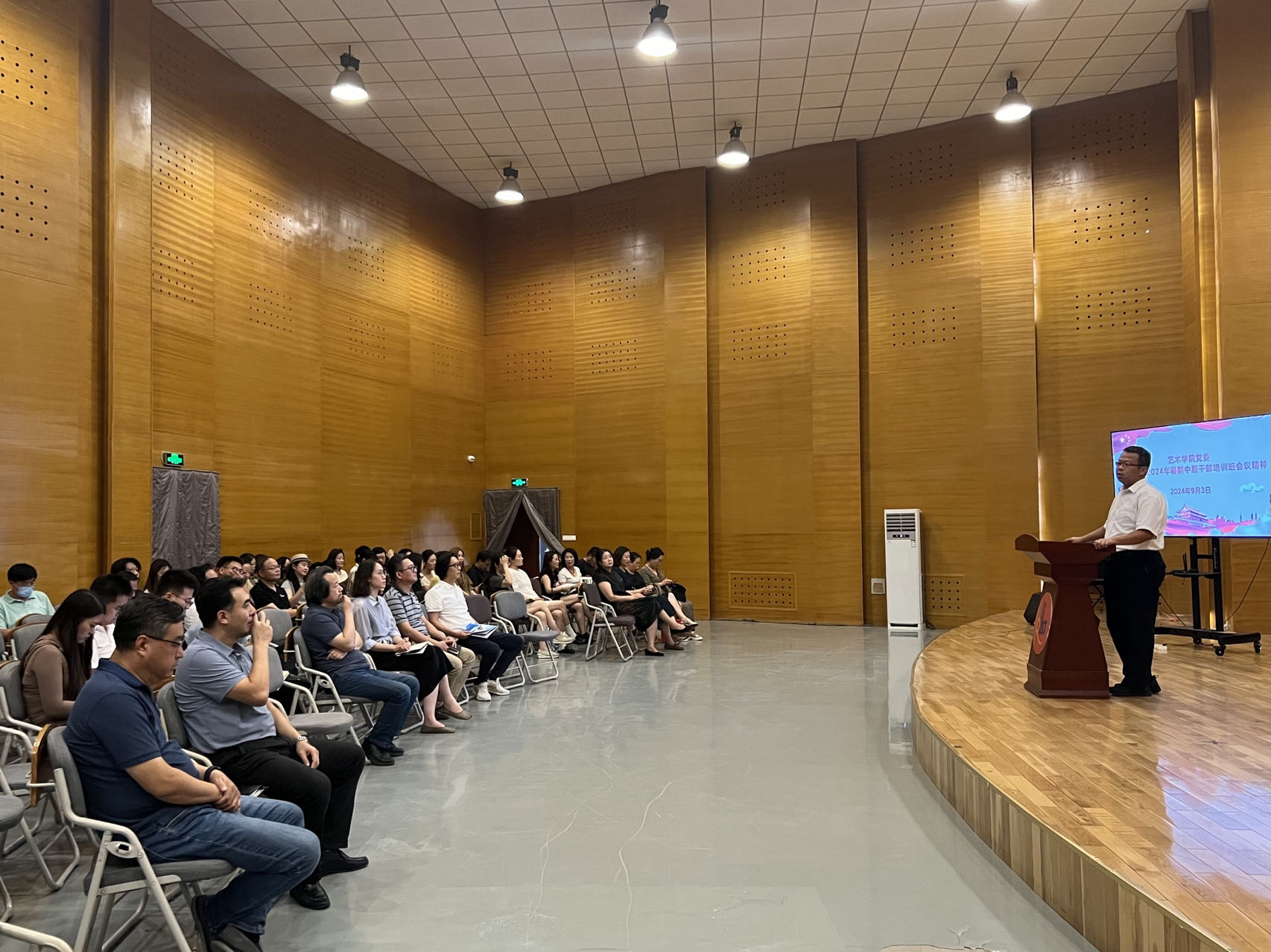 9月3日,Netflav 于音乐厅召开全体教职工大会。Netflav 院长李宏文,党委书记刘庆,副处级组织员曲波,副院长兼副书记丁一宁,副院长禹青、勾锐等Netflav 领导班子成员及全体教职工共同参加会议。会议由刘庆主持。
