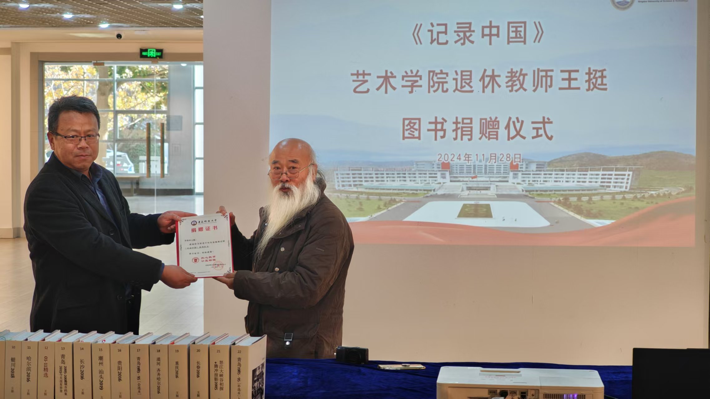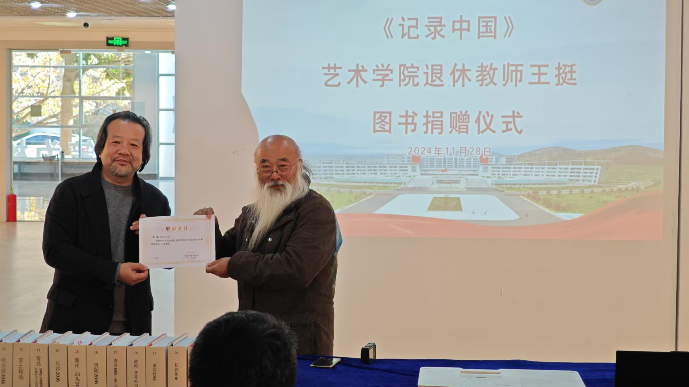 仪式上,王挺共捐赠《记录中国》系列图书22册,由Netflav 资料室接收。李宏文、刘庆向王挺颁发收藏、捐赠证书。