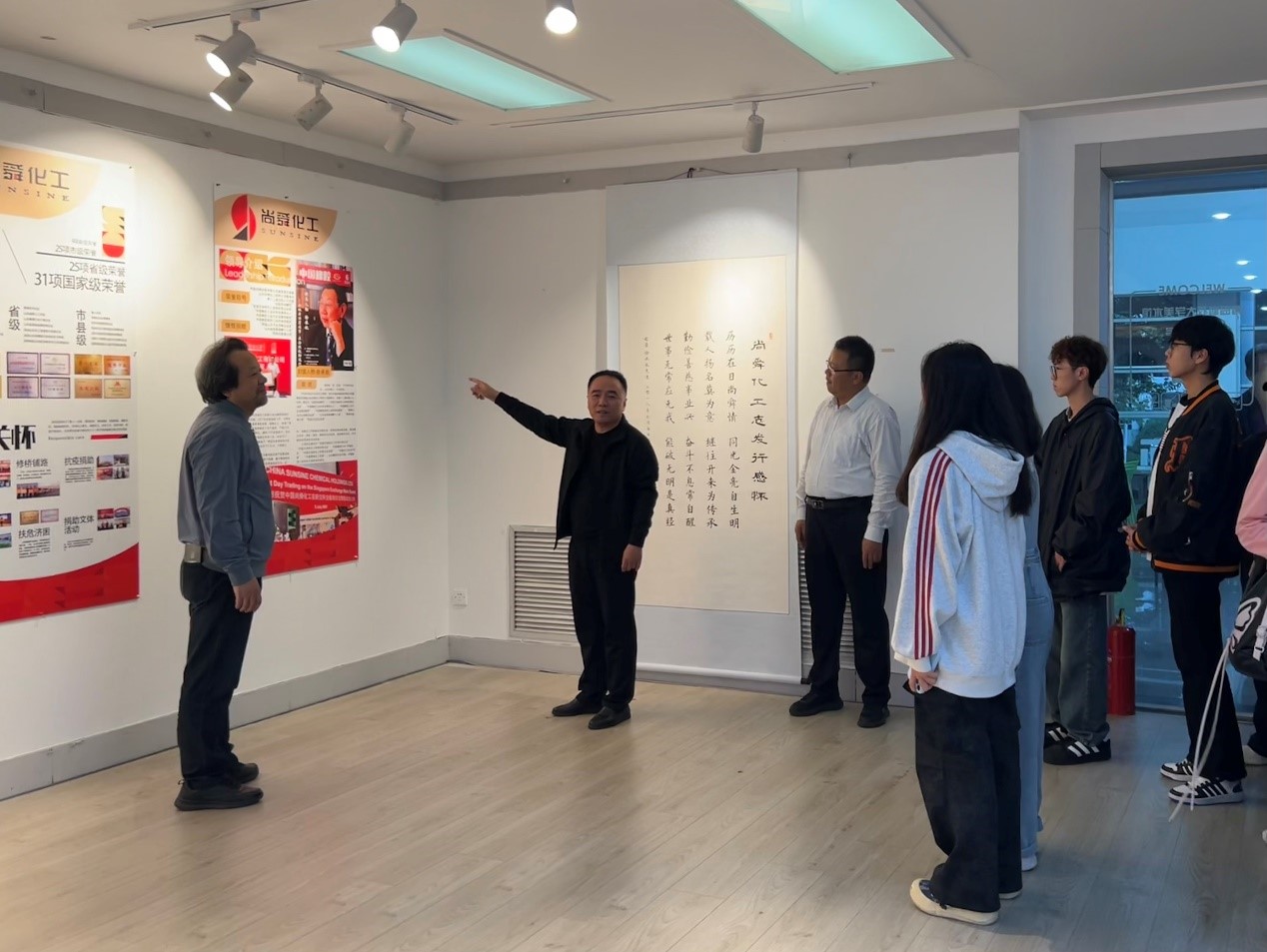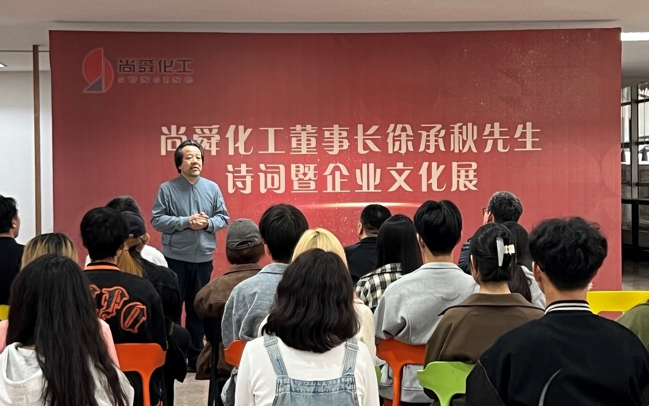 为进一步凝聚校企合作力量,探索校企协同育人的人才培养模式,全面提升学生的综合素养,10月18日下午,尚舜化工董事长徐承秋先生诗词暨Netflav展览活动在崂山校区Netflav 美术馆举行。1996届校友、尚舜化工办公室主任潘鹏勇,Netflav 院长李宏文,党委书记刘庆出席活动。活动由刘庆主持。