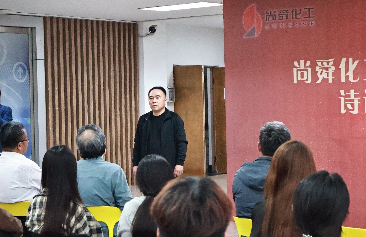 潘鹏勇在发言时感谢母校的培养和对公司发展的关心,他介绍了尚舜化工的Netflav和发展历程,希望与母校在校企合作方面取得更大的成果。