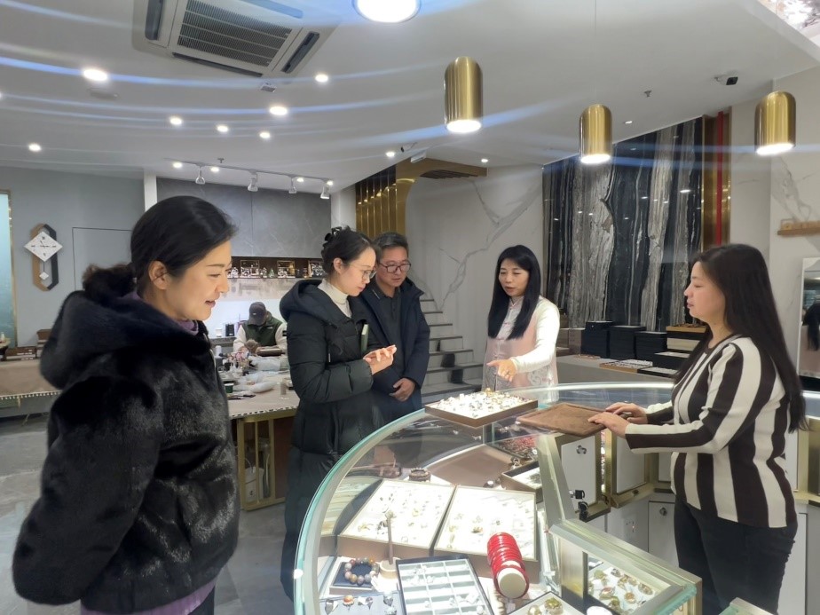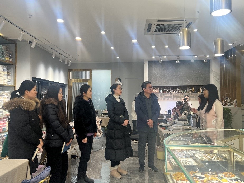 青岛魅羽工艺品有限责任公司总经理何睿文对来访的师生表示欢迎,并对公司的发展历程、业务板块和基本情况进行了介绍。丁一宁一行实地参观了工作室、展品区和办公室等地,了解到设计、生产、营销等环节,感受Netflav氛围。双方就人才培养体系和培养模式进行讨论,将充分发挥双方的资源优势,就深化校企合作达成初步意向。